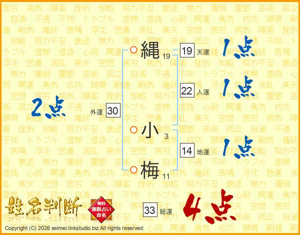 縄小梅さんの総運は33画の4点!