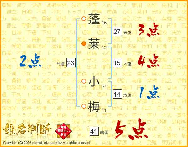 蓬莱小梅さんの総運は41画の5点!