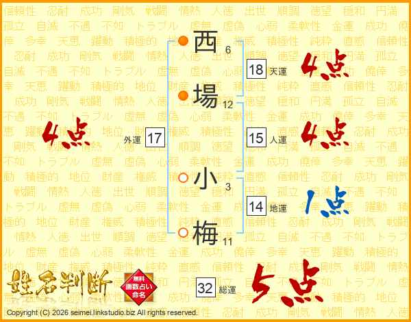 西場小梅さんの総運は32画の5点!