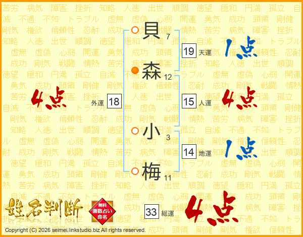 貝森小梅さんの総運は33画の4点!