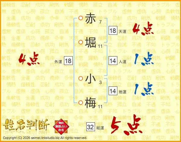 赤堀小梅さんの外運は18画の4点!