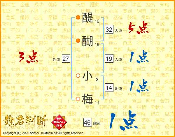 醍醐小梅さんの総運は46画の1点!
