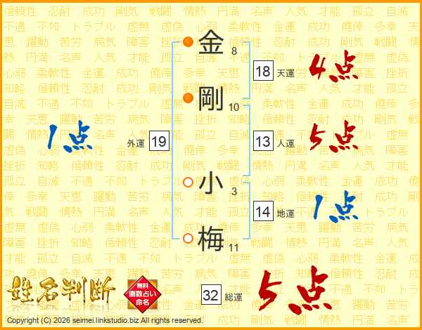 金剛小梅さんの総運は32画の5点!