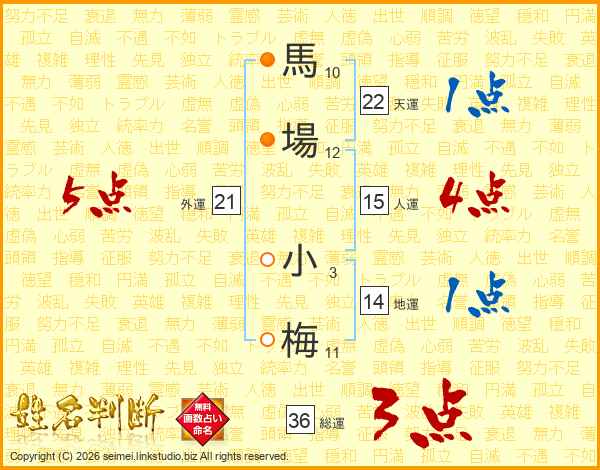 馬場小梅さんの天運は22画の1点!