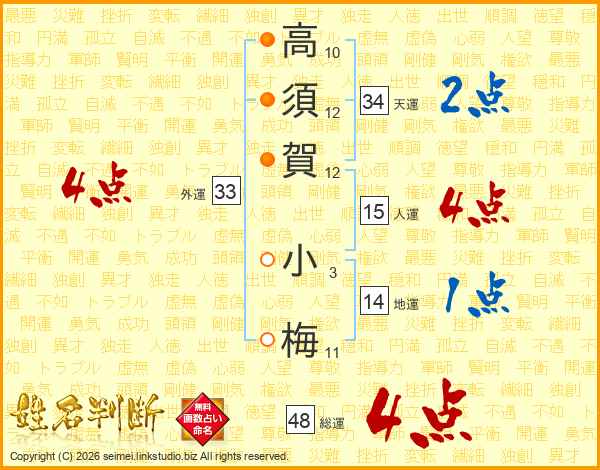 高須賀小梅さんの総運は48画の4点!