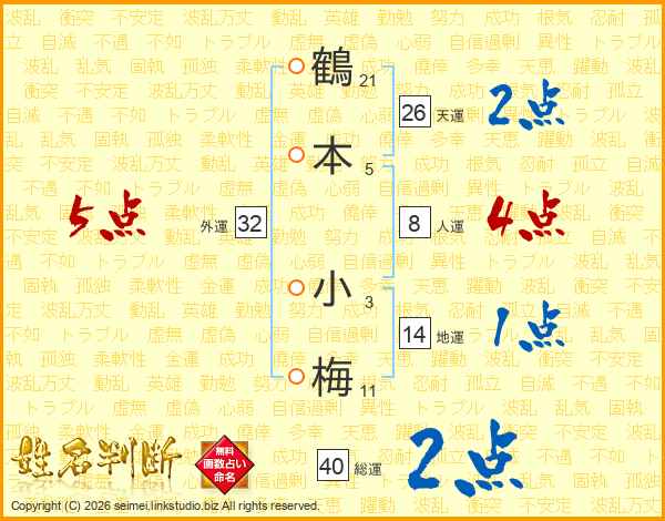 鶴本小梅さんの外運は32画の5点!