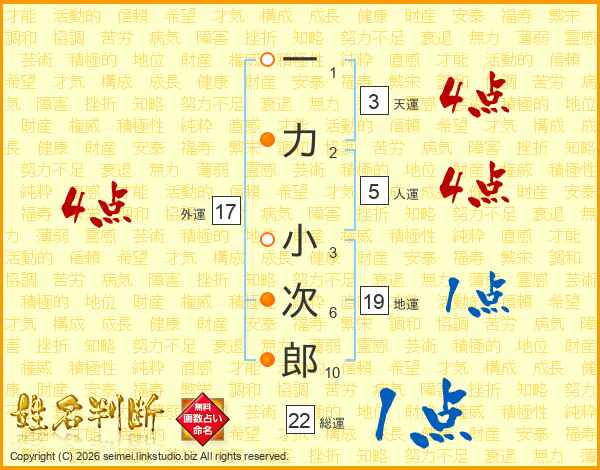 一(1画)力(2画) 小(3画)次(6画)郎(10画)