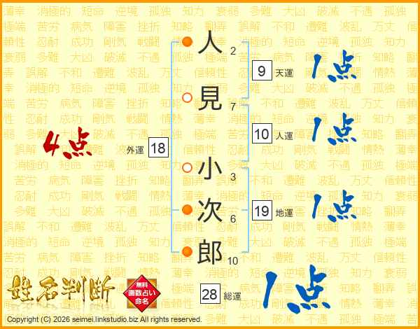 人見小次郎さんの総運は28画の1点!