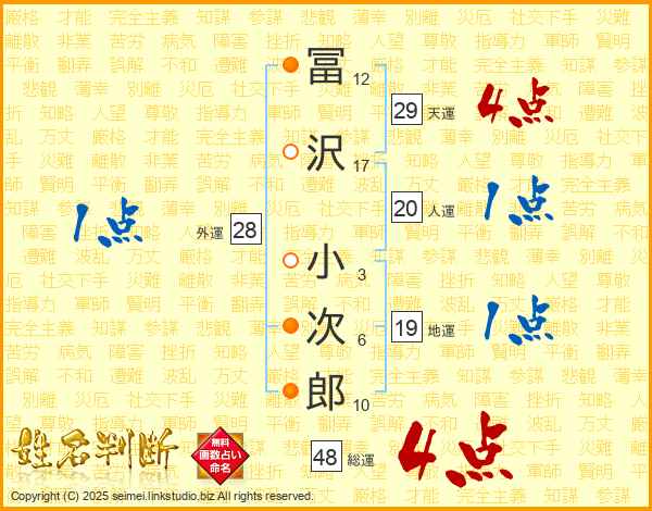 冨(12画)沢(17画) 小(3画)次(6画)郎(10画)