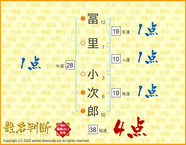 冨(12画)里(7画) 小(3画)次(6画)郎(10画)