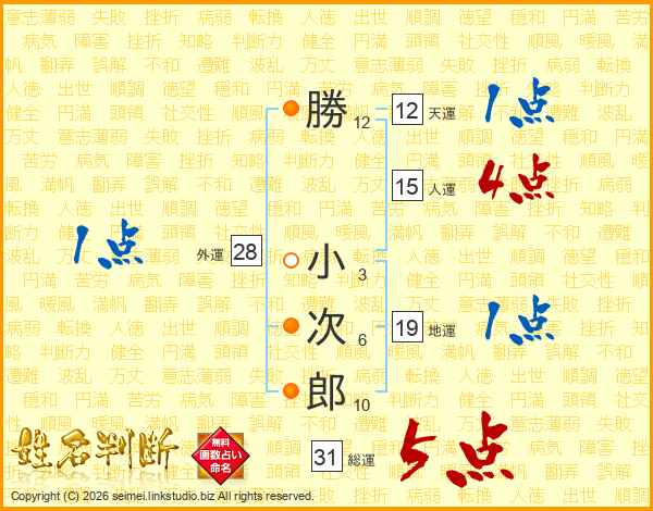 勝小次郎さんの総運は31画の5点!