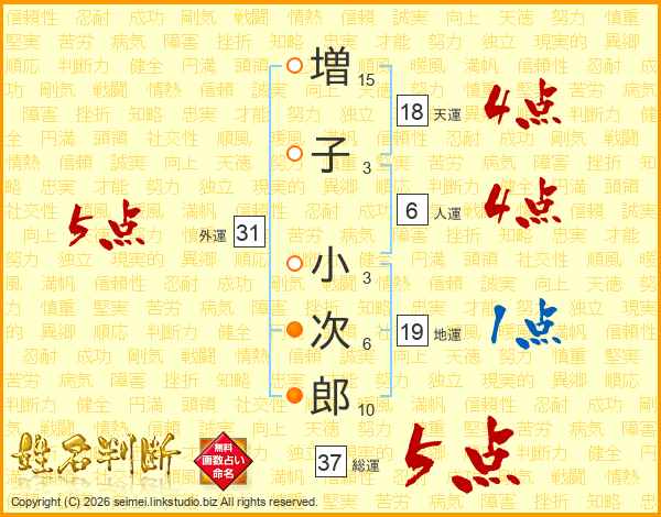 増子小次郎さんの総運は37画の5点!