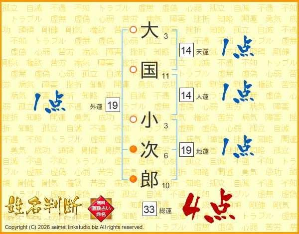 大国小次郎さんの総運は33画の4点!