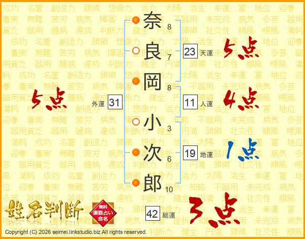 奈良岡小次郎さんの天運は23画の5点!