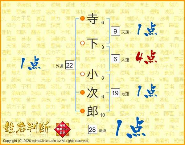 寺下小次郎さんの総運は28画の1点!