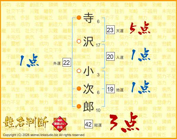 寺沢小次郎さんの総運は42画の3点!