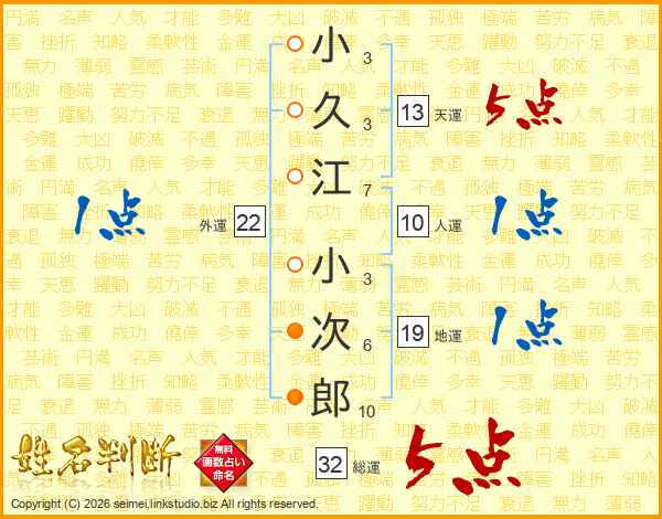 小久江小次郎さんの総運は32画の5点!