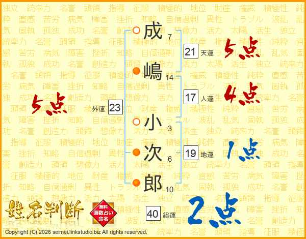 成嶋小次郎さんの天運は21画の5点!