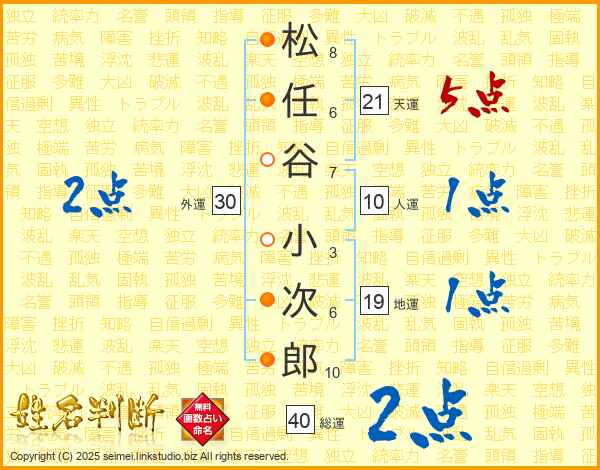 松(8画)任(6画)谷(7画) 小(3画)次(6画)郎(10画)