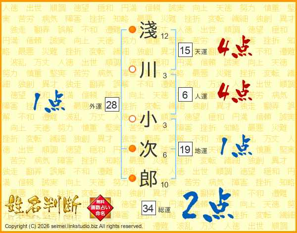 淺(12画)川(3画) 小(3画)次(6画)郎(10画)