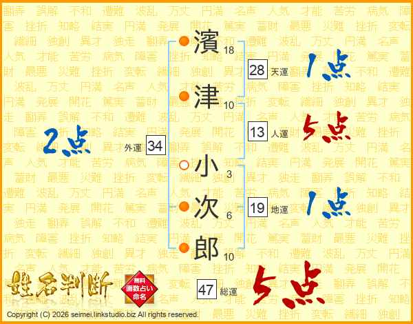 濱津小次郎さんの総運は47画の5点!
