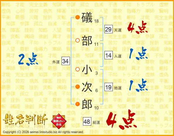 礒部小次郎さんの天運は29画の4点!