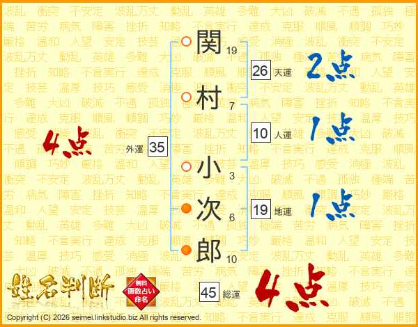 関村小次郎さんの天運は26画の2点!