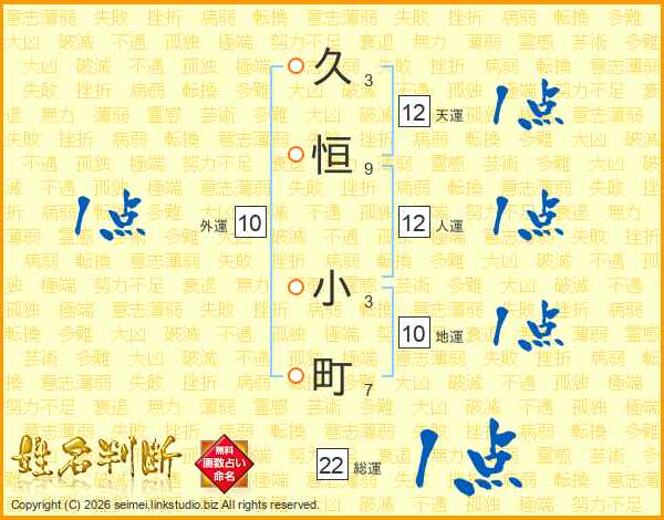 久(3画)恒(9画) 小(3画)町(7画)