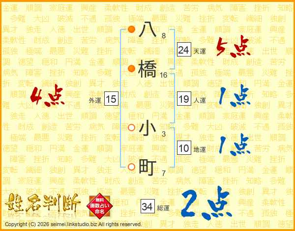 八橋小町さんの総運は34画の2点!