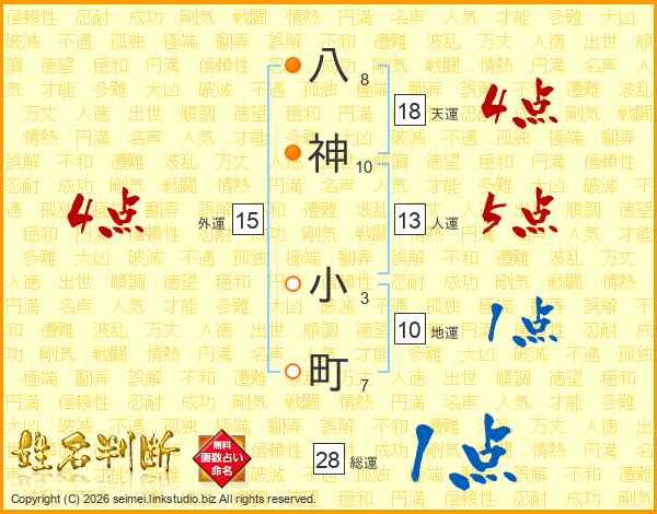 八神小町さんの総運は28画の1点!