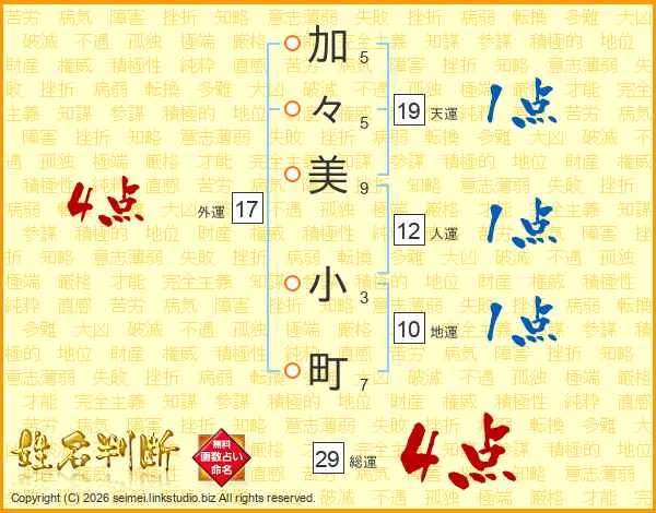 加々美小町さんの総運は29画の4点!