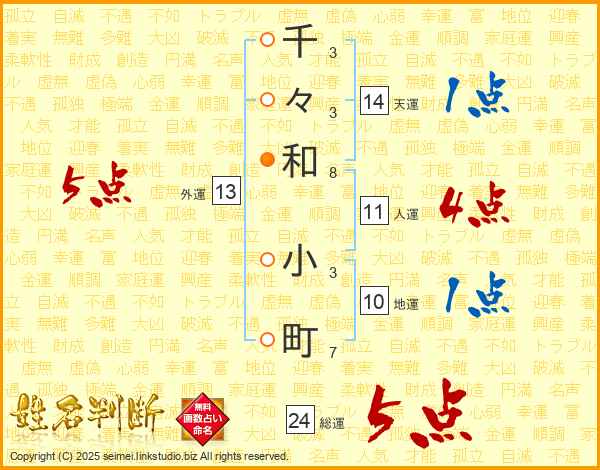 千(3画)々(3画)和(8画) 小(3画)町(7画)