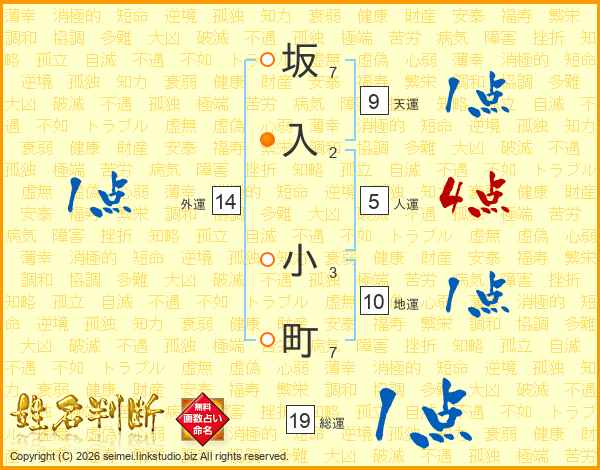 坂入小町さんの総運は19画の1点!