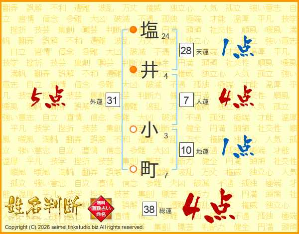 塩井小町さんの総運は38画の4点!