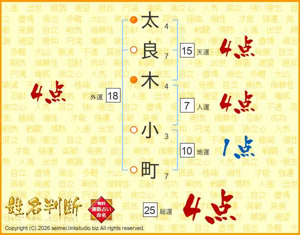 太良木小町さんの総運は25画の4点!
