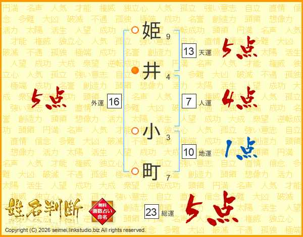 姫井小町さんの総運は23画の5点!