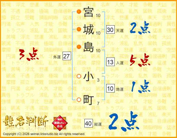宮(10画)城(10画)島(10画) 小(3画)町(7画)