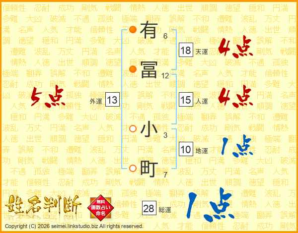 有冨小町さんの総運は28画の1点!