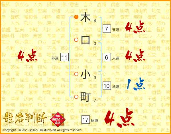 木口小町さんの総運は17画の4点!