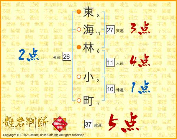 東(8画)海(11画)林(8画) 小(3画)町(7画)
