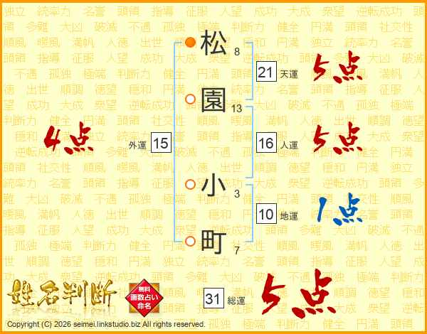 松園小町さんの総運は31画の5点!
