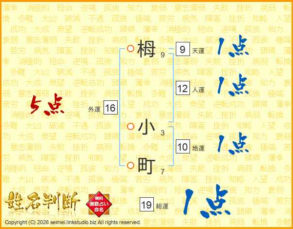 栂小町さんの総運は19画の1点!