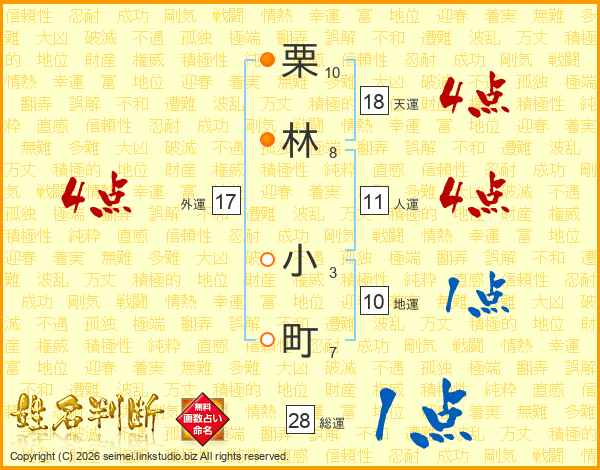 栗林小町さんの総運は28画の1点!
