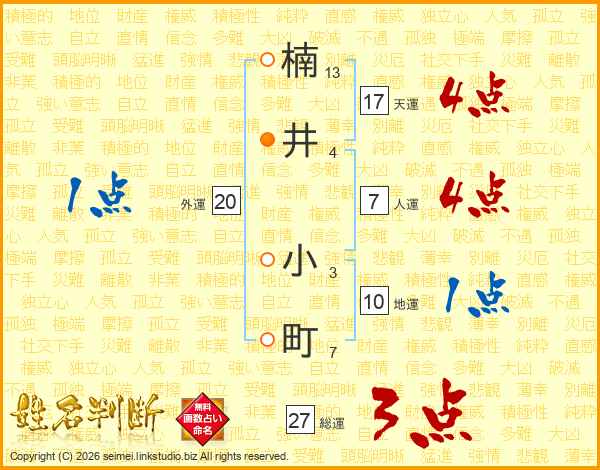 楠井小町さんの総運は27画の3点!