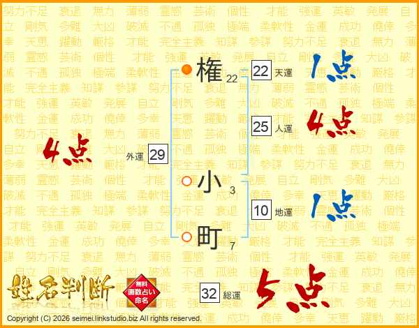 権小町さんの総運は32画の5点!