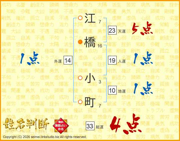 江橋小町さんの総運は33画の4点!
