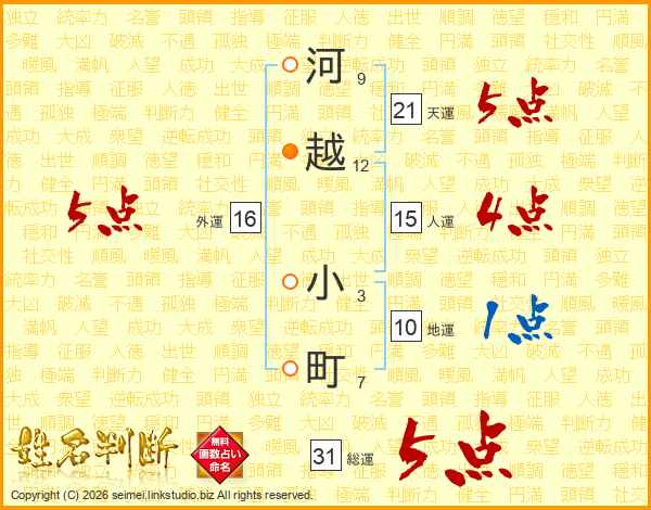 河越小町さんの総運は31画の5点!
