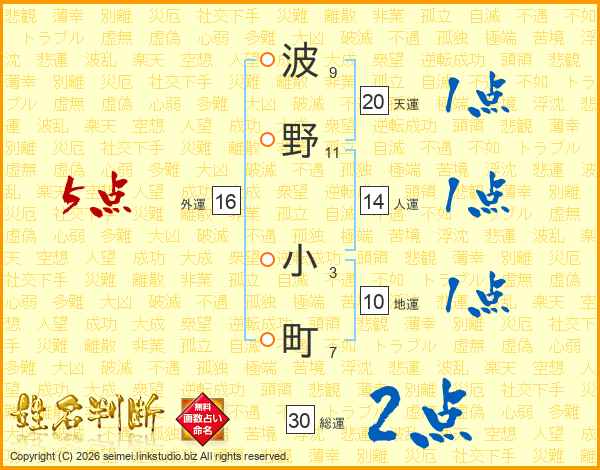 波野小町さんの総運は30画の2点!