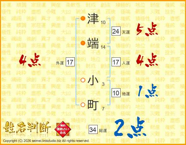 津端小町さんの総運は34画の2点!