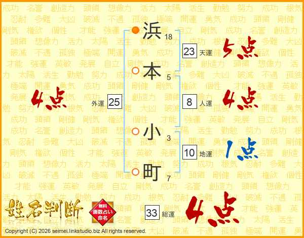 浜本小町さんの総運は33画の4点!